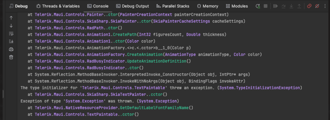 iOS version throw error when page has a Telerik Control on it and you can see error below.