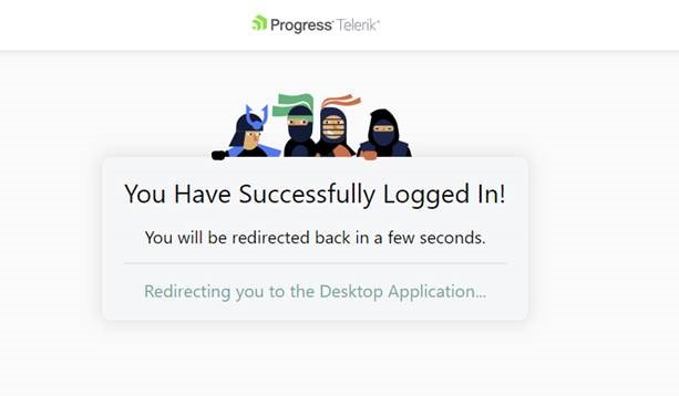 The message I get from the browser is that I have successfully logged in – "Redirecting you to the Desktop Application"