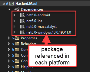 Once you're done installing it, you will now see the Telerik package reference in each target platform's