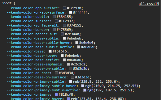 $kendo-colors: map.merge($kendo-colors, k-generate-color-variations('primary', #818cf8, 'default'));