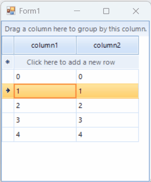 5. The cell exit edit mode. CellEndEdit triggers. As result, the icon now shows arrow, indicating this is the current row.