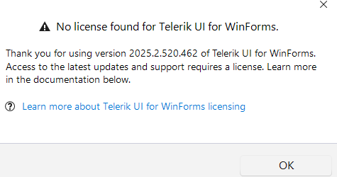 With our latest 2025 Q2 release, UI components from the Telerik UI for .NET WinForms library require activation through a license key.