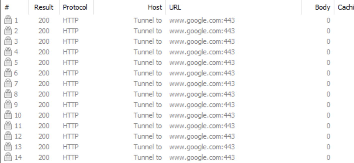 As you can see on the attached screenshot, the packet sizes were 0 and it says "Tunnel to" ?!