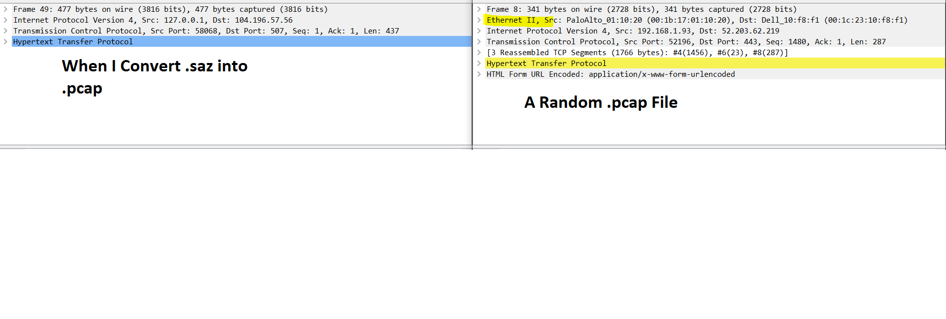 I have been using fiddler from last 4 months and whenever I convert .saz file into .pcap it hides the Ethernet II information, as the picture is attached for the reference.