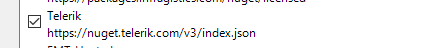 5) For Bundler, I'm using nuget packages in my .net project. I installed the nuget packages from a Telerik package source website shown below.