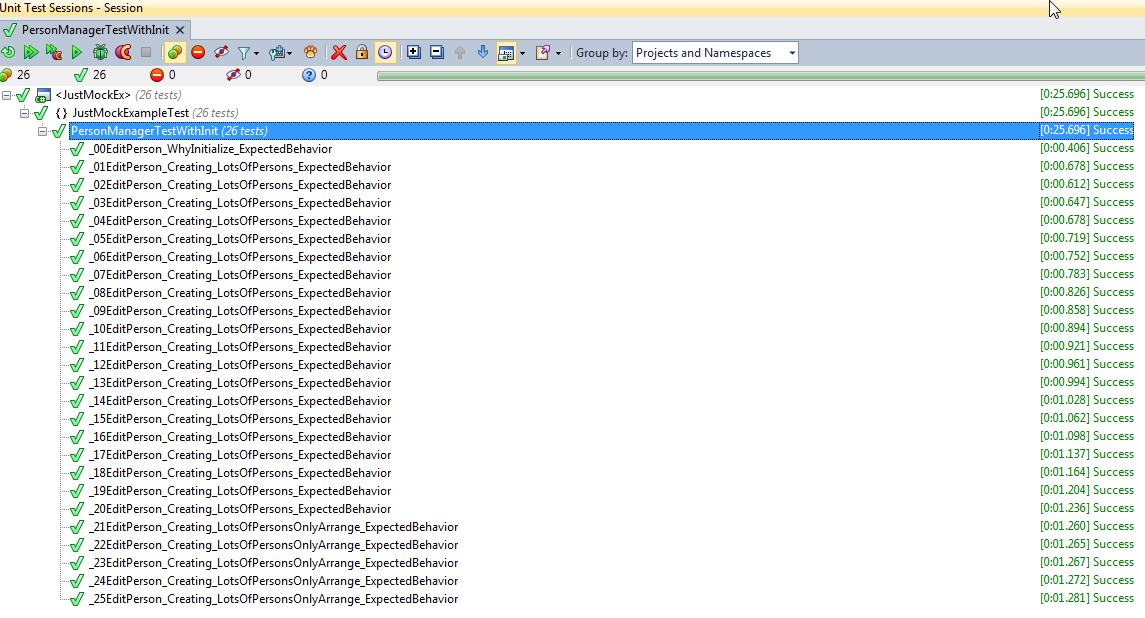 (26 tests), [0:25.530] Success JustMockExampleTest (26 tests), [0:25.530] Success PersonManagerTestWithInit (26 tests), [0:25.530] Success _00EditPerson_WhyInitialize_ExpectedBehavior, [0:00.418] Success _01EditPerson_Creating_LotsOfPersons_ExpectedBehavior, [0:00.613] Success _02EditPerson_Creating_LotsOfPersons_ExpectedBehavior, [0:00.602] Success _03EditPerson_Creating_LotsOfPersons_ExpectedBehavior, [0:00.638] Success _04EditPerson_Creating_LotsOfPersons_ExpectedBehavior, [0:00.672] Success _05EditPerson_Creating_LotsOfPersons_ExpectedBehavior, [0:00.714] Success _06EditPerson_Creating_LotsOfPersons_ExpectedBehavior, [0:00.743] Success _07EditPerson_Creating_LotsOfPersons_ExpectedBehavior, [0:00.783] Success _08EditPerson_Creating_LotsOfPersons_ExpectedBehavior, [0:00.822] Success _09EditPerson_Creating_LotsOfPersons_ExpectedBehavior, [0:00.855] Success _10EditPerson_Creating_LotsOfPersons_ExpectedBehavior, [0:00.891] Success _11EditPerson_Creating_LotsOfPersons_ExpectedBehavior, [0:00.922] Success _12EditPerson_Creating_LotsOfPersons_ExpectedBehavior, [0:00.962] Success _13EditPerson_Creating_LotsOfPersons_ExpectedBehavior, [0:00.994] Success _14EditPerson_Creating_LotsOfPersons_ExpectedBehavior, [0:01.029] Success _15EditPerson_Creating_LotsOfPersons_ExpectedBehavior, [0:01.061] Success _16EditPerson_Creating_LotsOfPersons_ExpectedBehavior, [0:01.100] Success _17EditPerson_Creating_LotsOfPersons_ExpectedBehavior, [0:01.139] Success _18EditPerson_Creating_LotsOfPersons_ExpectedBehavior, [0:01.167] Success _19EditPerson_Creating_LotsOfPersons_ExpectedBehavior, [0:01.206] Success _20EditPerson_Creating_LotsOfPersons_ExpectedBehavior, [0:01.252] Success _21EditPerson_Creating_LotsOfPersonsOnlyArrange_ExpectedBehavior, [0:01.272] Success _22EditPerson_Creating_LotsOfPersonsOnlyArrange_ExpectedBehavior, [0:01.269] Success _23EditPerson_Creating_LotsOfPersonsOnlyArrange_ExpectedBehavior, [0:01.276] Success _24EditPerson_Creating_LotsOfPersonsOnlyArrange_ExpectedBehavior, [0:01.290] Success _25EditPerson_Creating_LotsOfPersonsOnlyArrange_ExpectedBehavior, [0:01.299] Success