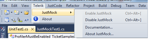 There are several reasons that can cause this error. One of the causes may be that your profiler is disabled. If so you will have to enable it from the Telerik menu in your Visual Studio. You will need to click on the JustMock menu, Enable JustMock. I have attached a screenshot to orient you better.