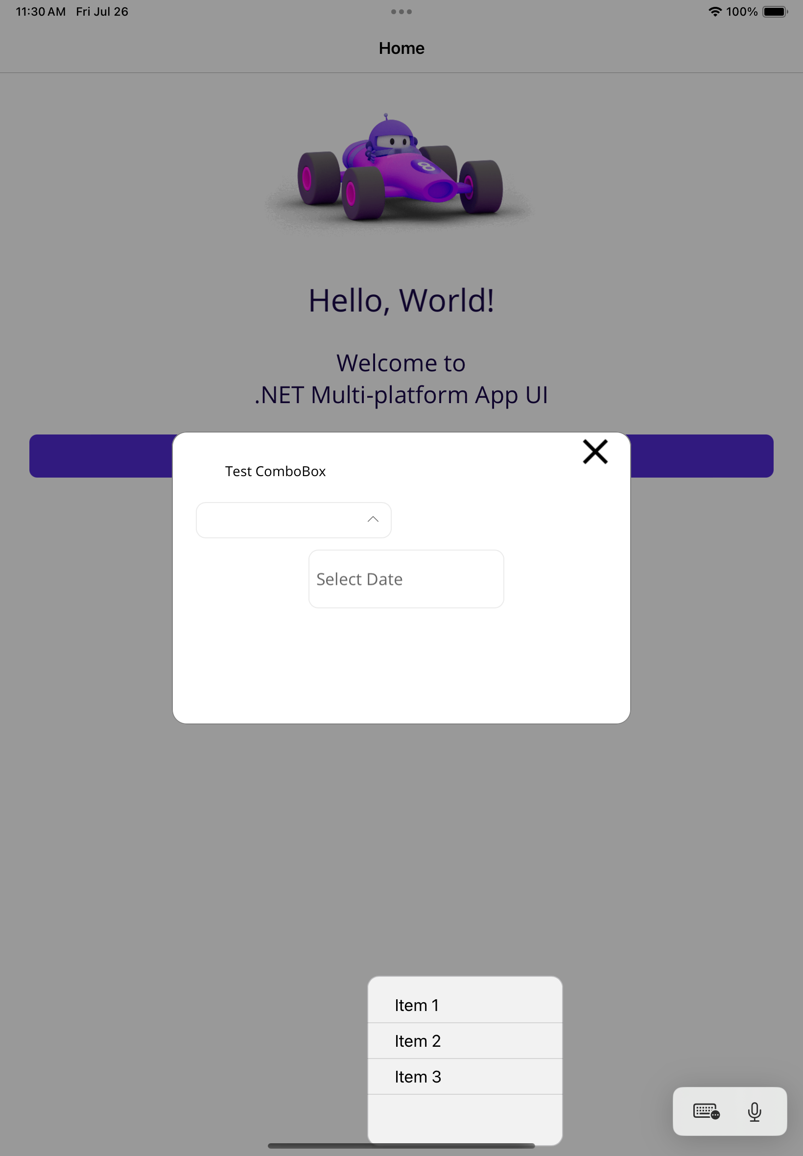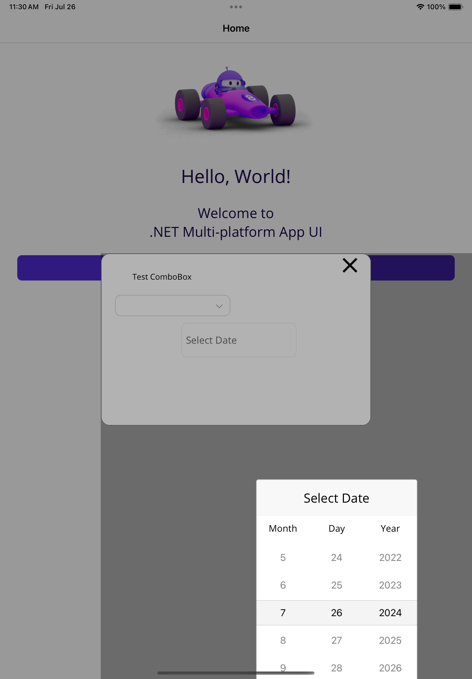 I've noticed that when I use a RadComboBox or RadDatePicker within a Popup window on iOS that the dropdown displays outside of the popup window and therefore not able to click and choose options within the dropdown. I have created a basic program that shows the problem. I'm running it on an iPad simulator running iOS 17.5. Sometimes, I can adjust the vertical offset to get it to display within the popup, but it would be better if it displayed just below the control.