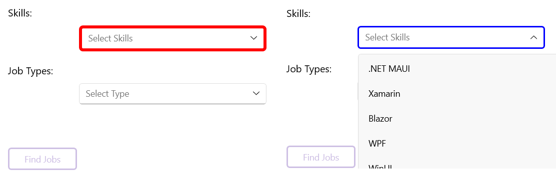 Good to know that and do you have any sample code of visual states like focused, normal and disabled? for the rest of the state, I just take Button as example, and we understand that those are typical for the Button and differ from the concept of the ComboBox,