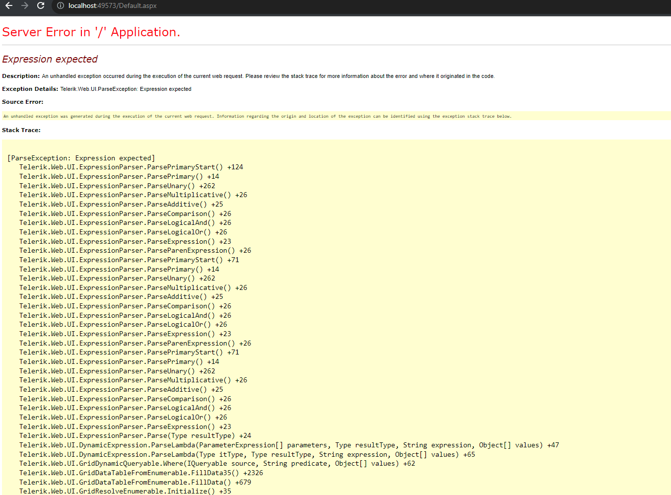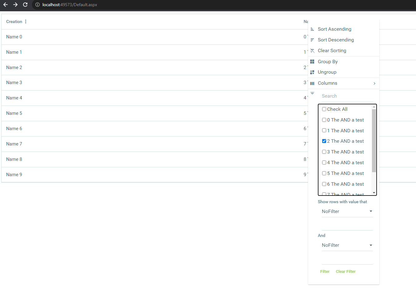 When in a column, you have data like 'test AND test' the Filter got no FilterExpression when you select this particular line in the filter with a tickbox.