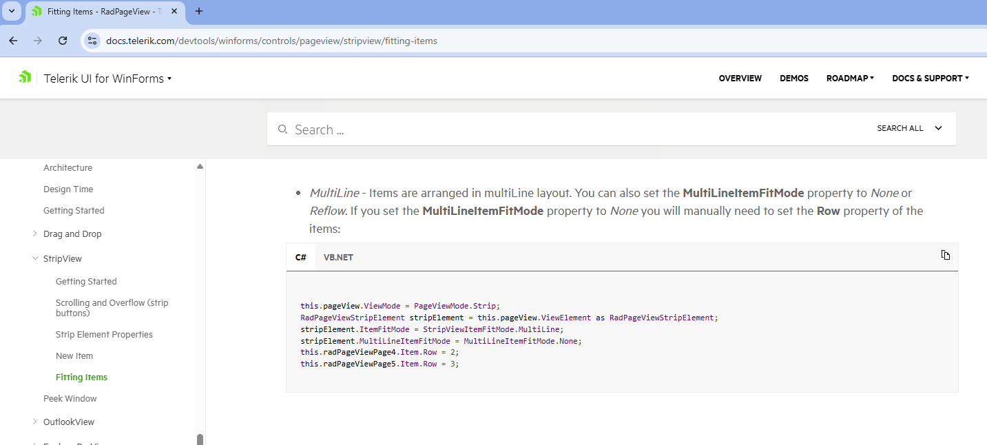 I have a RadPageView in Strip mode with 18 tabs on it.