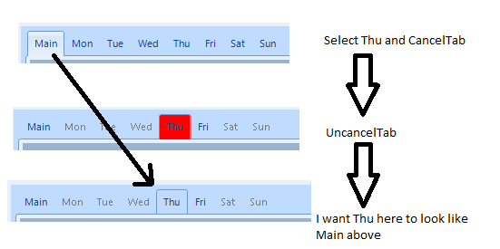 private void UncancelTab(int offset){ DetailTabControl.Pages[offset].Item.ResetValue(RadPageViewItem.BackColorProperty, Telerik.WinControls.ValueResetFlags.Local); DetailTabControl.Pages[offset].Item.ResetValue(RadPageViewItem.NumberOfColorsProperty, Telerik.WinControls.ValueResetFlags.Local); DetailTabControl.Pages[offset].Item.ResetValue(RadPageViewItem.DrawFillProperty, Telerik.WinControls.ValueResetFlags.Local);}I hope that the provided information addresses your question. Should you have any other questions, do not hesitate to contact us.