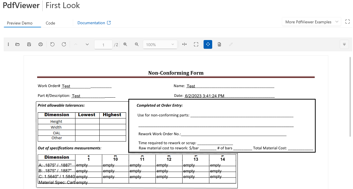 We also opened the file the 2023.3.1114 PDFViewer demo with the same results.