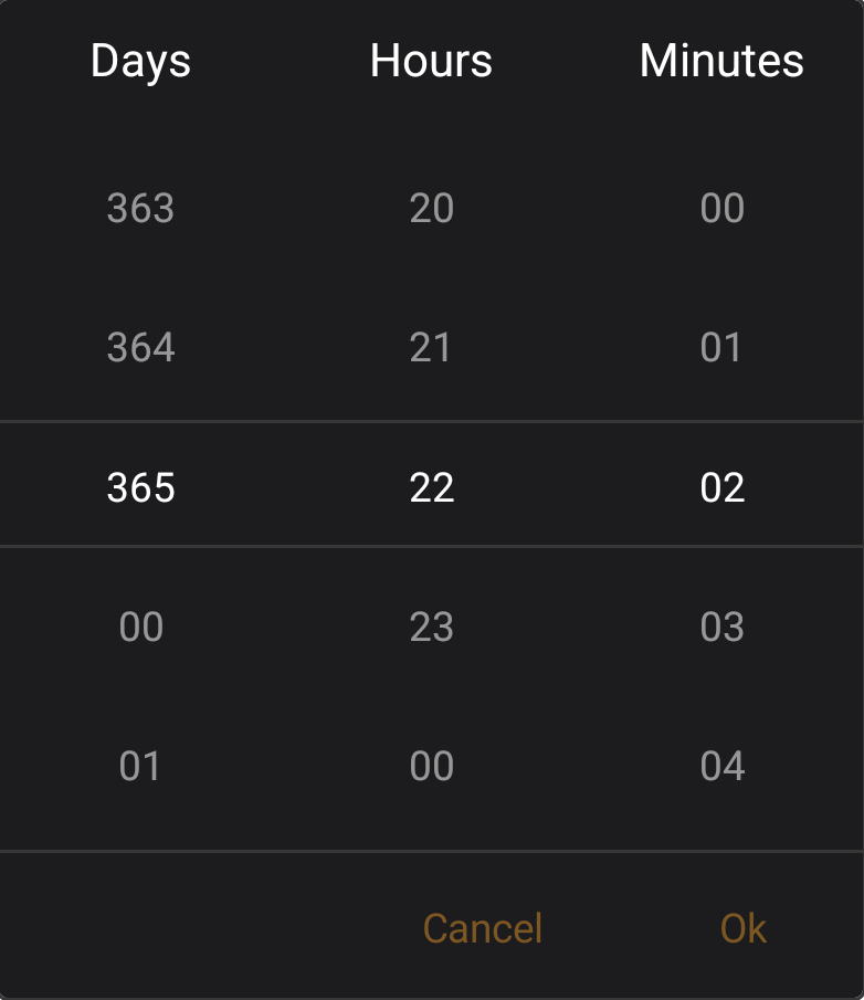<ContentPage.Resources> <ResourceDictionary> <Style TargetType="telerik:PickerPopupContentView" x:Key="popupViewStyle"> <Setter Property="BackgroundColor" Value="{AppThemeBinding Light=White, Dark=LightBlue}"/> <Setter Property="WidthRequest" Value="270"/> </Style> <Style TargetType="telerik:PickerDropDownContentView" x:Key="dropDownStyle"> <Setter Property="BackgroundColor" Value="{AppThemeBinding Light=White, Dark=LightBlue}"/> <Setter Property="WidthRequest" Value="270"/> </Style> </ResourceDictionary> </ContentPage.Resources> <VerticalStackLayout> <telerik:RadTimeSpanPicker BorderColor="#8660C5" PickerMode="DropDown" IsClearButtonVisible="True" IsToggleButtonVisible="True" AutomationId="timeSpanPicker"> <telerik:RadTimeSpanPicker.DropDownSettings> <telerik:PickerDropDownSettings DropDownViewStyle="{StaticResource dropDownStyle}"/> </telerik:RadTimeSpanPicker.DropDownSettings> <telerik:RadTimeSpanPicker.PopupSettings> <telerik:PickerPopupSettings PopupViewStyle="{StaticResource popupViewStyle}"/> </telerik:RadTimeSpanPicker.PopupSettings> </telerik:RadTimeSpanPicker> </VerticalStackLayout>