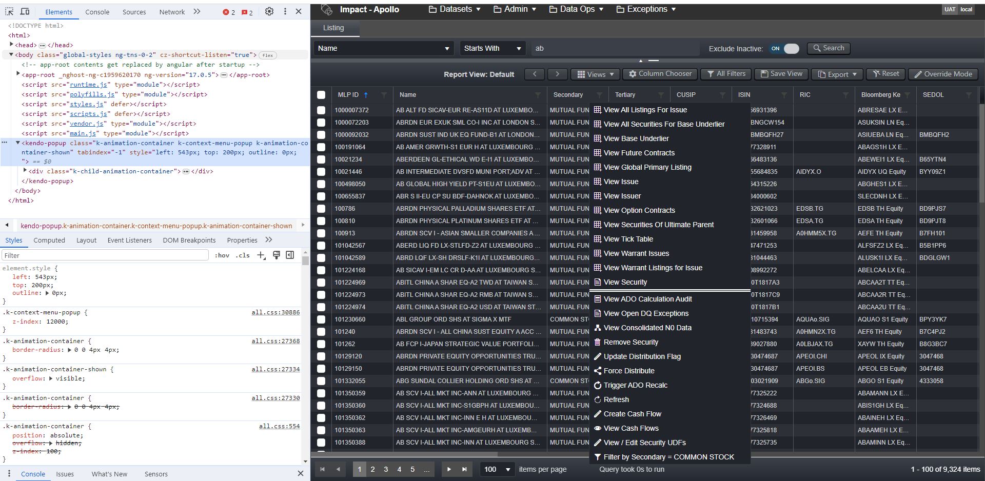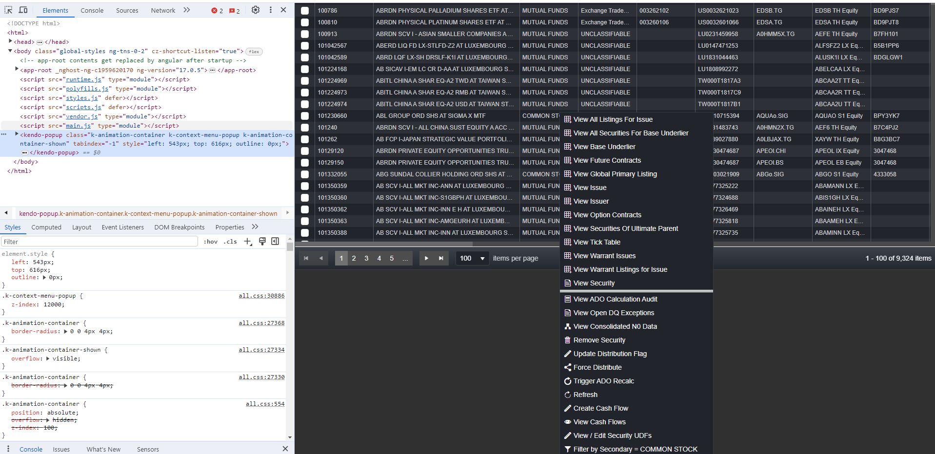 I migrated kendo-angular-grid from 7.4.0 -> 14.2.0 and kendo-angular-menu from 4.0.3 -> 14.2.0 and observe that now the context menu sometimes causes the whole grid to shift upwards and off screen when displayed. Examples of normal behaviour (good.jpg) and corrupt behaviour (corrupt.jpg) are attached below.