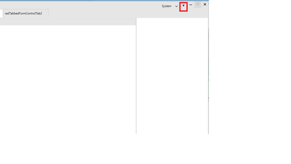The RadToolBarForm by default does not expose such a button or I am not able to show it. Can you share how the RadToolBarForm is set-up on your side? You can modify my test project to mimic your implementation and attached it again.