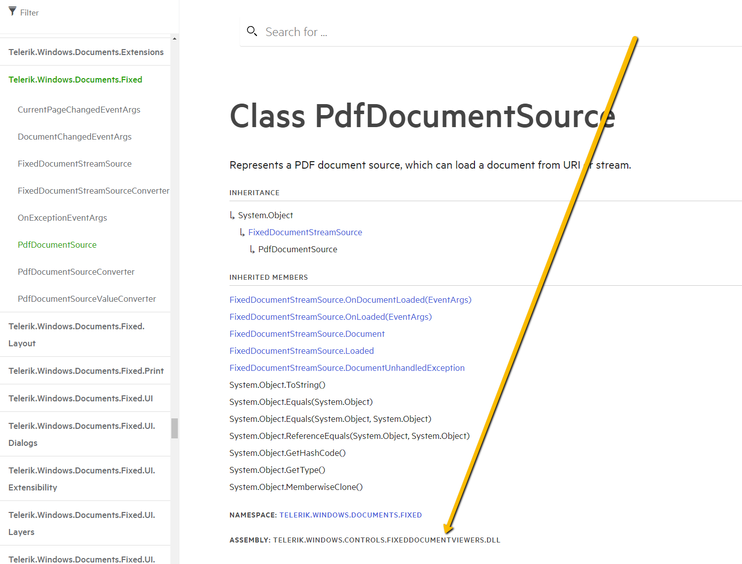 I have a PDF file that's been imported into a MemoryStream object and now I need to display it using the Telerik UI for WPF pdfViewer control. The existing documentation says that you can create a PdfDocumentSource object and bind the pdfViewer.DocumentSource to that. However, either PdfDocumentSource no longer exists, or I can't figure out what the correct Namespace is.