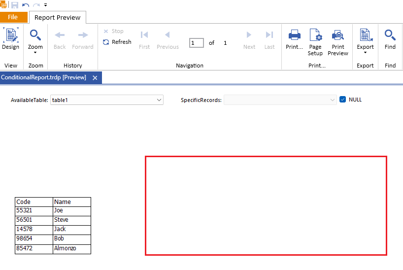 I have attached the extended .trdp report. When you preview it in the designer, the SpecificRecords parameter is expected to be marked as NULL and table3 should be hidden: