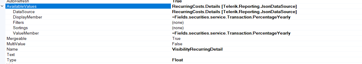 But now I want to connect my json data source to a report parameter, and set this parameter to true or false based on if a json value is 0.0.