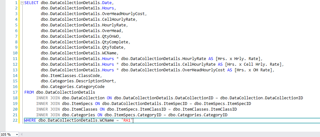 I am quite sure the work center name is spelled correctly in the database, as you can select the work center from the parameter drop-down at run time and it works. I attached some screenshots from my database. The query is the actual query from the report with the filter added for this instance.