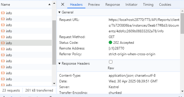 I would like to ask, why does Telerik Report request the /info api multiple times? Can this info interface be requested in other ways to reduce the number of times?