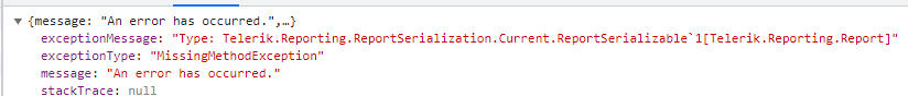 Unable to get report parameters. An error has occurred. Type: Telerik.Reporting.ReportSerialization.Current.ReportSerializable`1[Telerik.Reporting.Report]