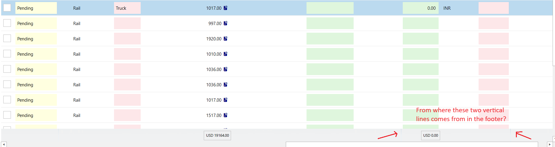 Also, sometimes the border which I used to display the sum in the footer having display issue, means the right border is hiding sometimes when I perform column resizing and sometimes without column resizing the same issue occurs.
