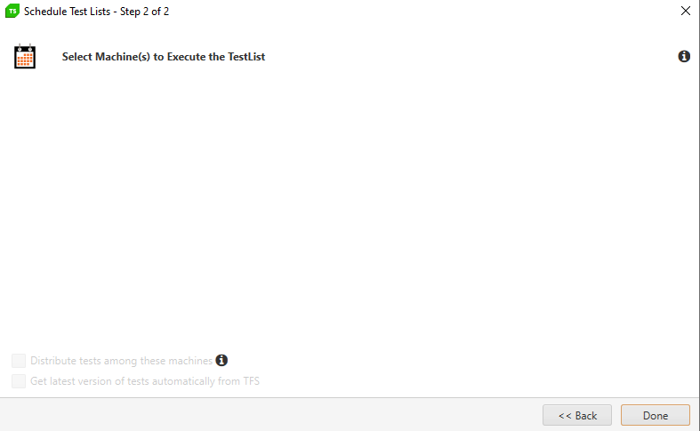 When i tried to schedule List not seeing anything under "Select Machines to execute the Test list" check the attachment for screenshot)
