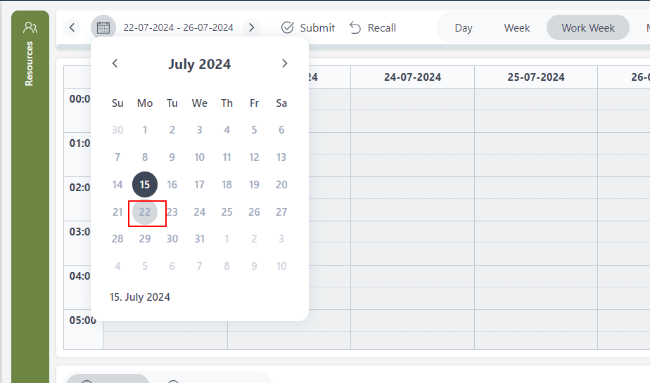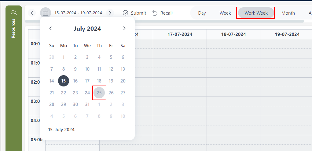 When I select a particular date using the calendar provided by Kendo Scheduler (in Work Week), I can read the selected date (for eg: 25th July). But when I again click on the calendar it does not highlight last selected date (i.e 25th July). Can't find any API to highlight the last selected date.