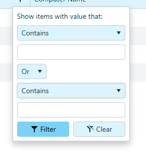 How can I influence the drop down filters so that both start with the operator 'Contains' and the logic between them as 'or'.