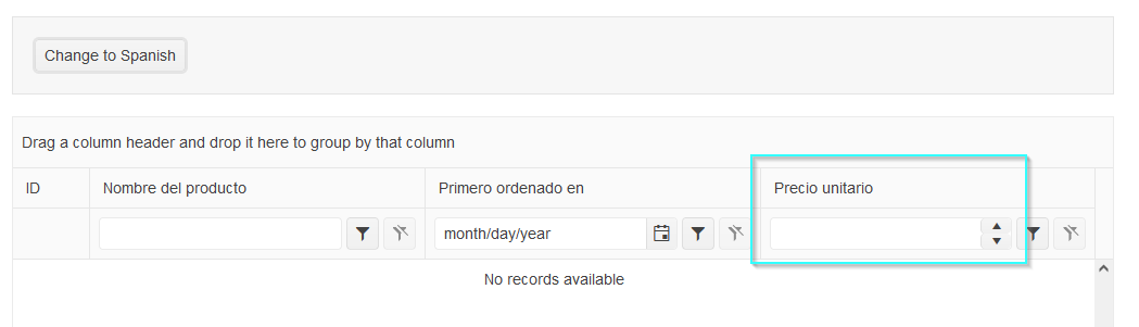 The way we can set the Globalization/Localization functionality of the native and Wrapper Grid is different. A good example of how we can change the languages and data formatting in the Native Grid is our overview demo. In it, you can see how we can switch between three English, French, and Spanish languages/culture.