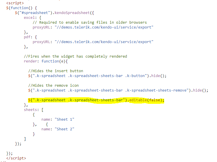 Remove insert and delete on SheetsBar with CSS and jQuery | Kendo UI Dojo (telerik.com)