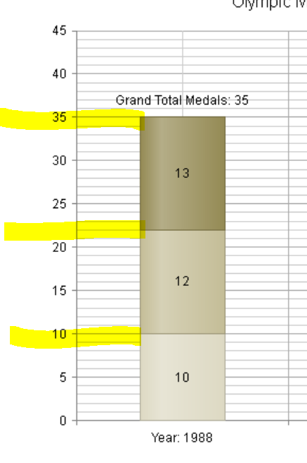 Is it possible to have a stacked graph where the y axis labels only show to inticate teh top of each part of the stack, eg 143 then next shows at 159 (based ont eh 2nd value of 16) and so on?