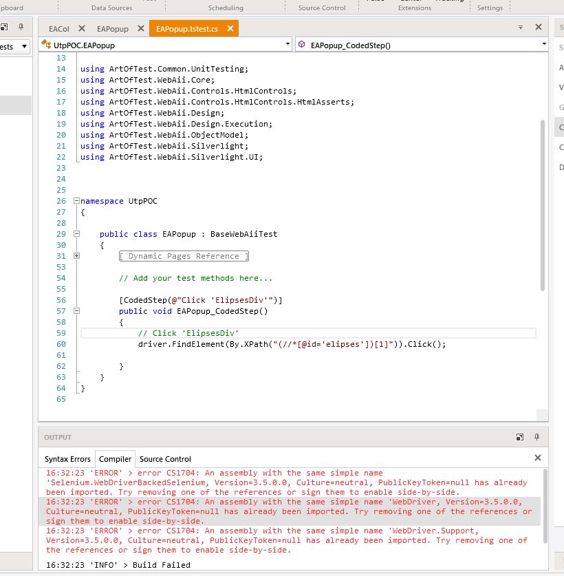 Please tell me in details about the steps to add coded selenium C# steps to an already recorded test. I followed the steps shared by telerik, but that did not help. I am getting build errors. Is it that if we have to add a coded step, all other previous steps, especially login has to be coded?