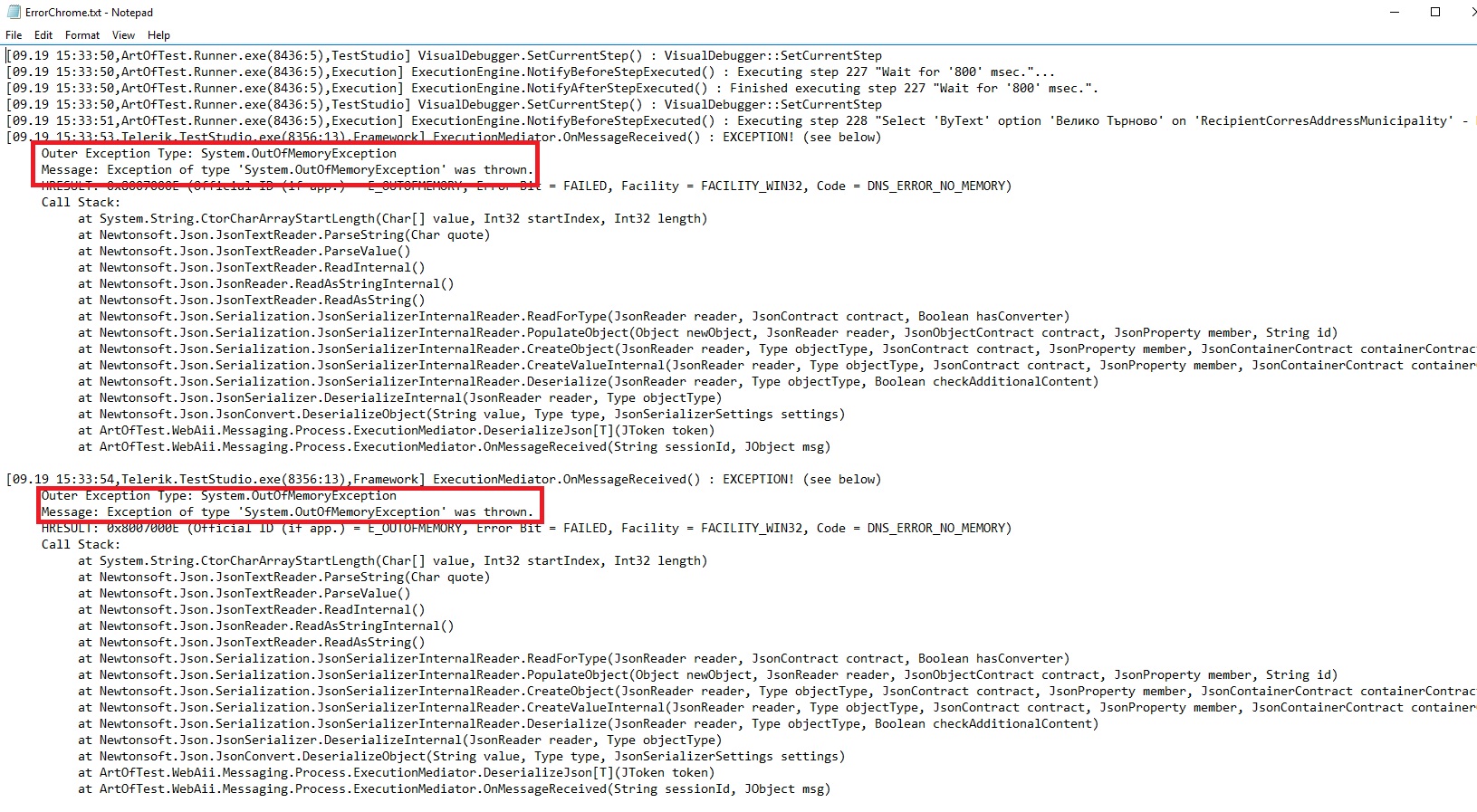 When I start Test D, the tests A, B, C, D, D', D'' are executed successfully but when runs the last test (Test D''') gives me the error System.OutOfMemoryExeption.