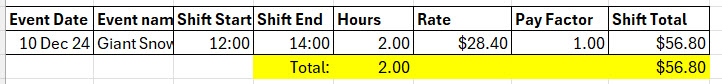 I don't know how to reference the =Sum(Fields.ShiftTotal) from the table, outside the table