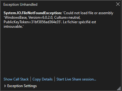 }If I add the references manually from the Telerik installation on my PC, I receive the following exception: