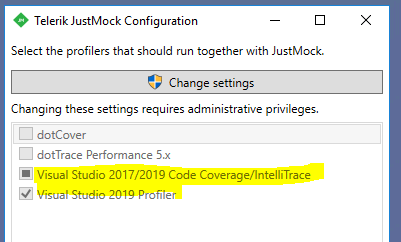 Disable the profilers or link them from the JustMock configuration utility. Restart the test runner and, if necessary, Visual Studio after linking..