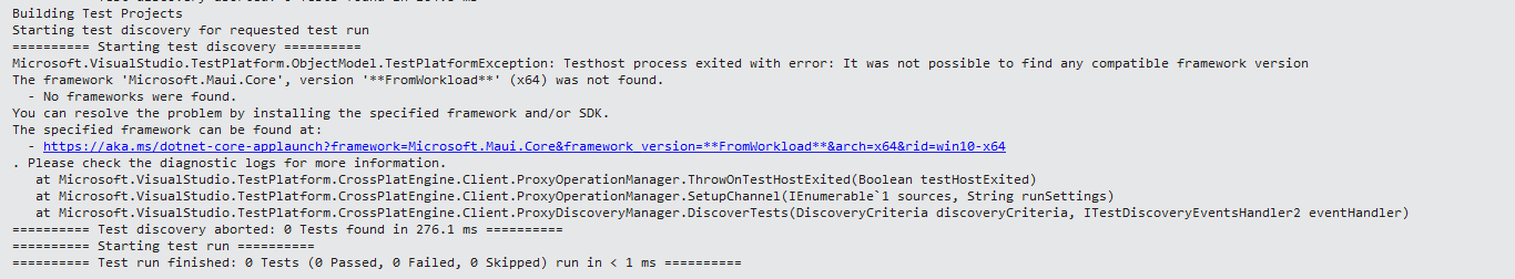 it can build successfully, but can't run test case, and it also show me below error when I did a run.