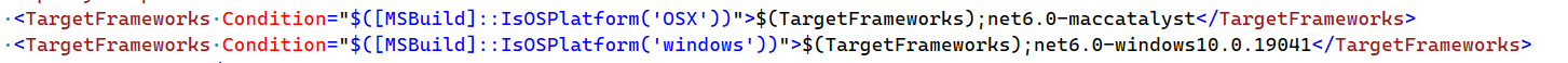 <TargetFrameworks Condition="$([MSBuild]::IsOSPlatform('windows'))">$(TargetFrameworks);net6.0-windows10.0.19041.0</TargetFrameworks>