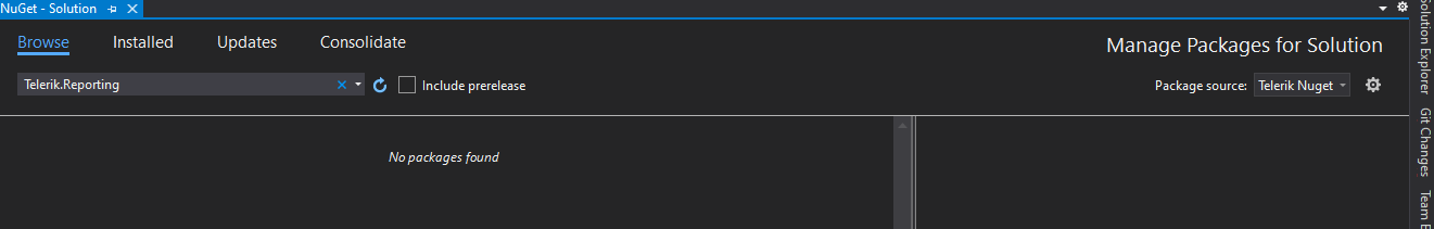 Added the Telerik NuGet feed as a Package source.