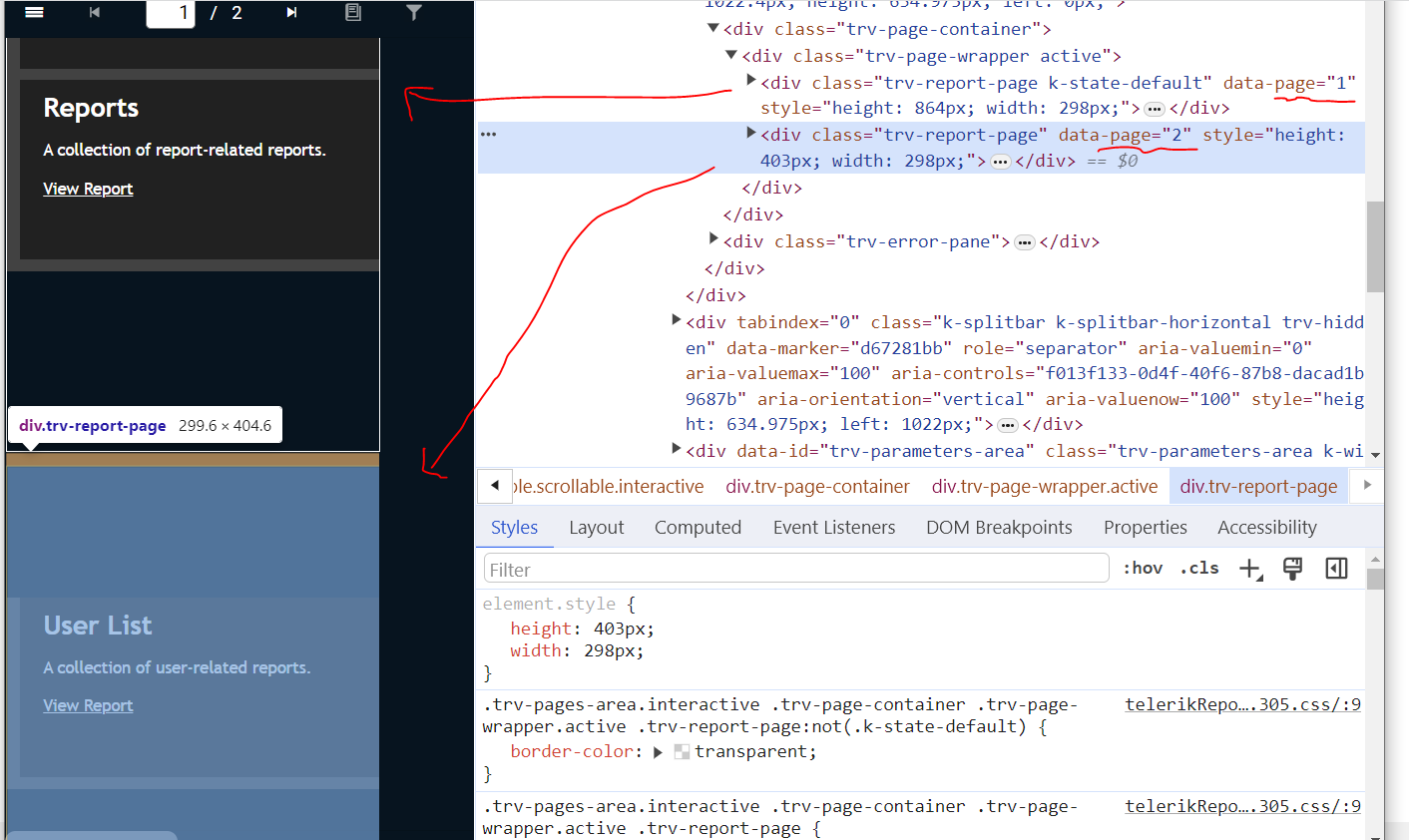 We are getting an unexpected scrollbar which allows us to scroll between pages one and two of our reports list. We would rather just use the nav bar to switch between both pages.