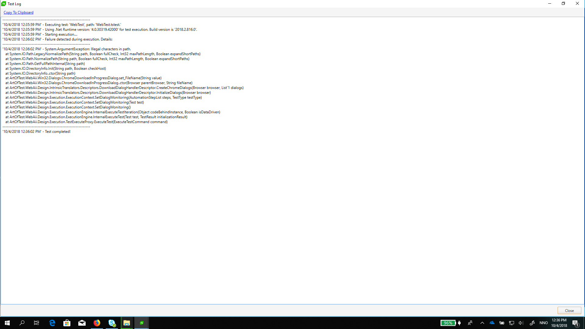 I have downloaded the trial version of telerik few days ago. Now only 2 days left for the trial version to expire.The Product Version I am using is 2016.1.330.0. From yesterday onwards I am not able to execute my tests. After clicking on the "Run Test" option, nothing is happening. Please help me how to solve it.