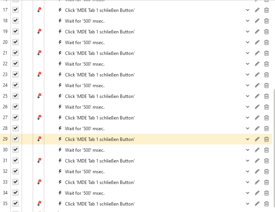 The button that is supposed to be clicked is the button to close a tab on the website. The loop is supposed to close all tabs. Hence, the loop is expected to have failed executions if there are less than 10 tabs open. As the step is marked as "Continue on Failure" I would assume that the test execution is not failing if these steps are failing.