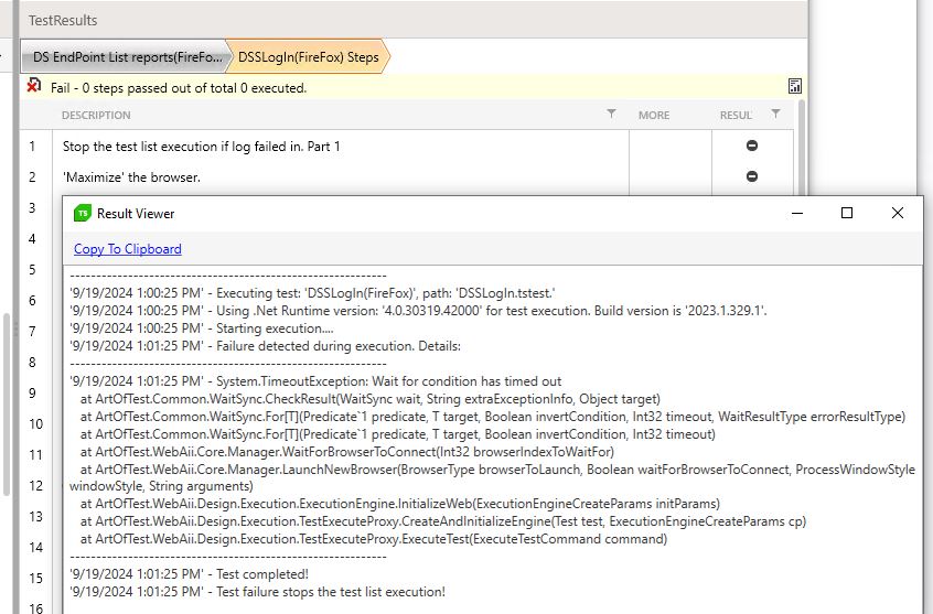 I use Firefox v. 130.0.1 (64-bit), Test Studio 231.3.29.0, plugin for Firefox is v. 2023.1.703.1. And yesterday I came across a problem: I run tests, but Firefox even not opens.
