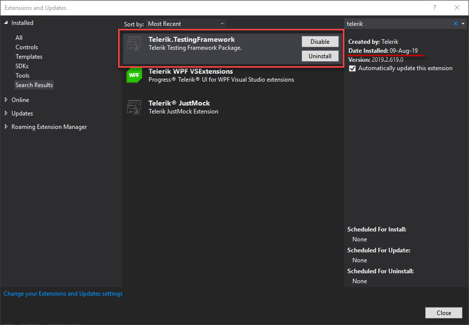 - Checked the available extension in my Visual Studio installation (I use VS 2017 professional). The Telerik Test Studio extensions were all removed successfully.