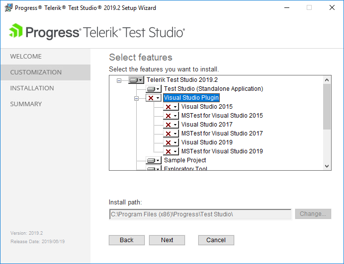 - Downloaded the latest .msi installation (same version as yours) and customized it. I disabled the whole Visual Studio section completely and completed the installation.
