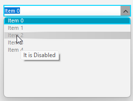 I try to set tooltip for combobox lineitem which is disabled , it is not showing tooltip, Is there any way to show tooltip while it disabled ? could you please help on this ASAP?