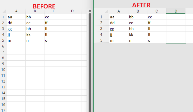 How would you recommend acheiving something like a trim functionality? Excel spreadsheets in my experience are notorious for having potenatially pages and pages of empty rows after all the actual content. In fact I am working with one like that now.How can I get rid of those empty rows?