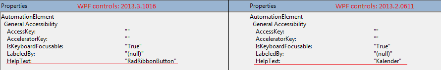 Attached screenshot shows how UISpy "sees" the HelpText property of RadRibbonButton control for different Telerik WPF controls packages.